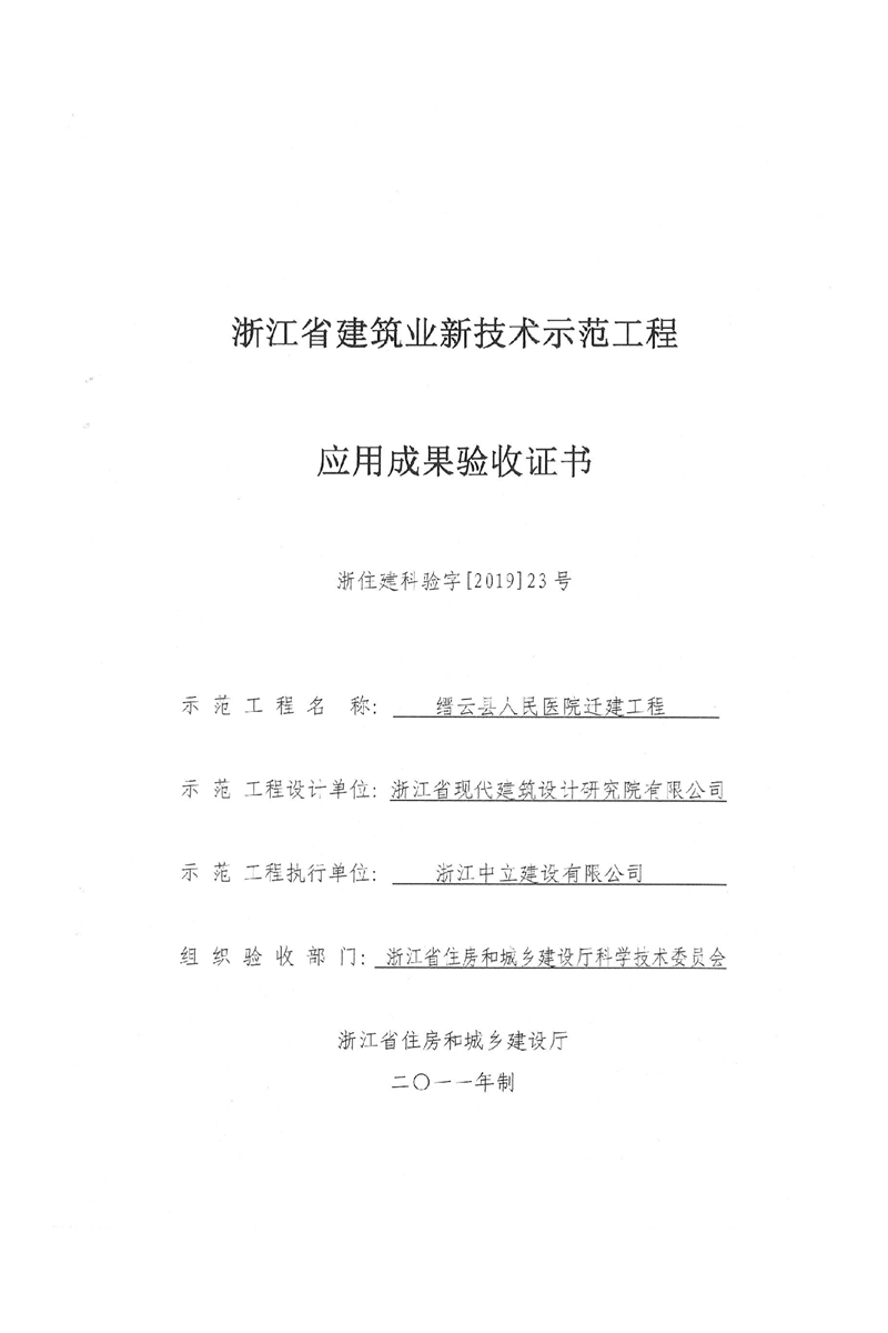 縉云縣人民醫(yī)院遷建工程榮獲 浙江省建筑業(yè)新技術(shù)應(yīng)用示范工程