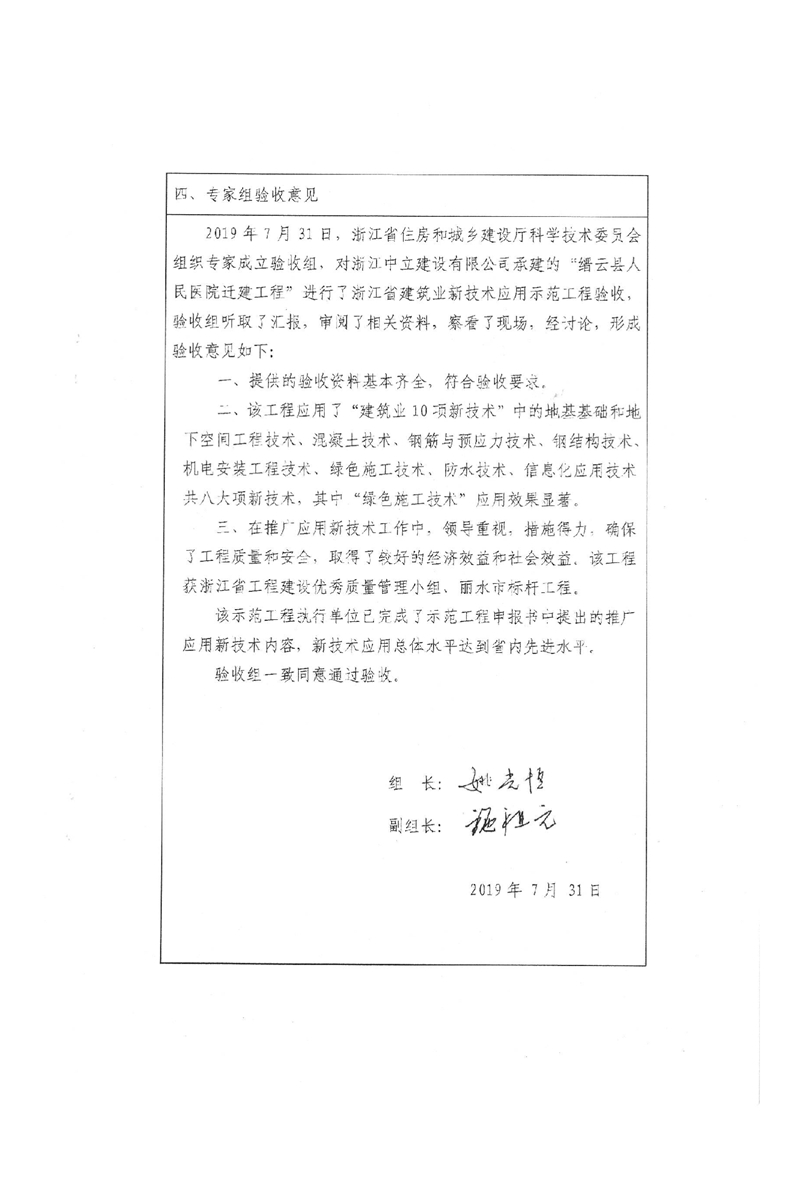 我公司承建的“縉云縣人民醫(yī)院遷建工程”通過了浙江省建筑業(yè)新技術(shù)應(yīng)用示范工程驗收。該工程是我公司也是麗水市本地企業(yè)首次榮獲浙江省建筑業(yè)新技術(shù)應(yīng)用示范工程,取得了較好的經(jīng)濟(jì)效益和社會效益。通過開展技術(shù)創(chuàng)新活動是我公司提升企業(yè)知名度,提高整體技術(shù)管理水平,鍛煉隊伍培養(yǎng)人才的重要途徑。